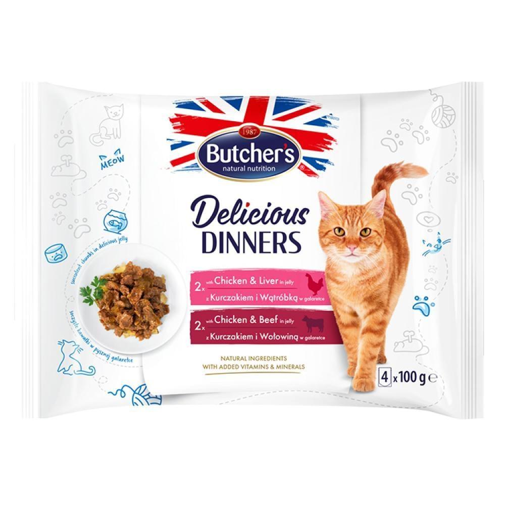 بوتشرز طعام رطب للقطط البالغة بنكهة الدجاج مع الكبدة والدجاج مع اللحم البقري بالجيلي